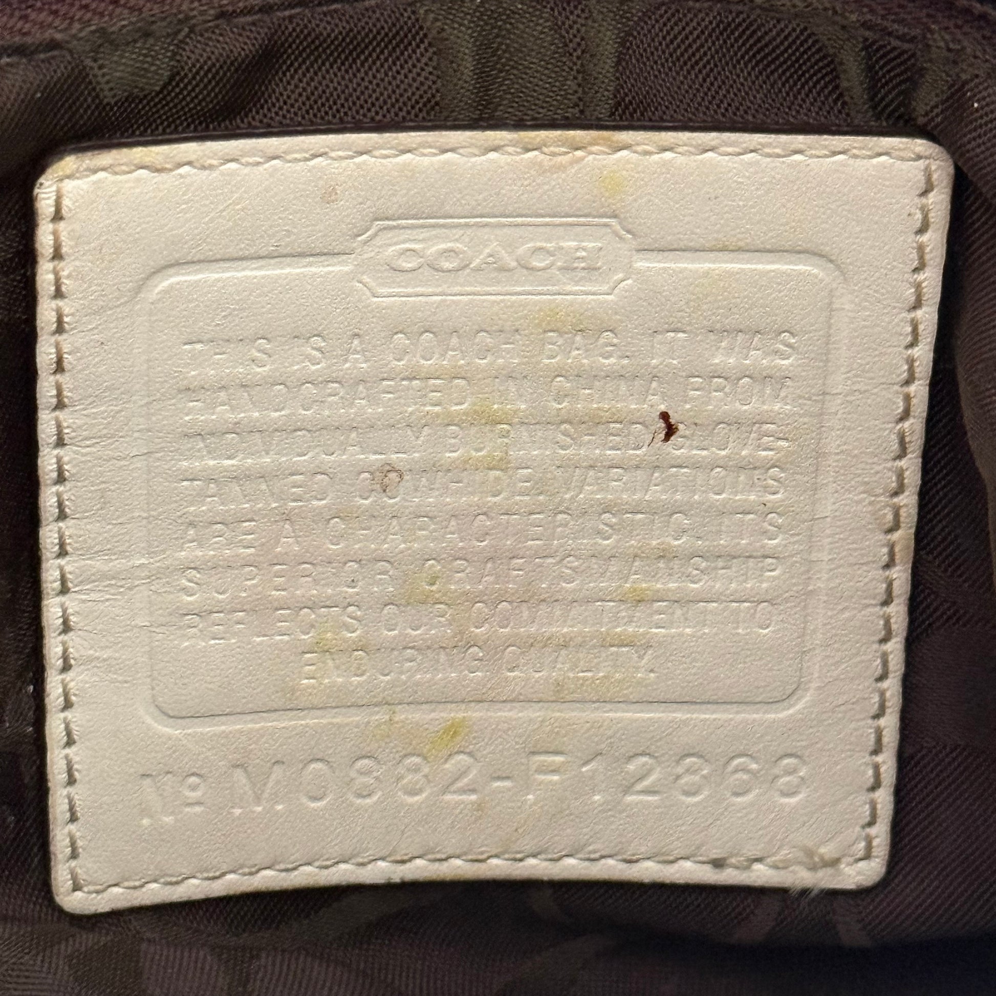 The cutest white leather coach shoulder bag in the rare legacy style <3 it has bronze hardware with pockets on the front and an adjustable strap! It has a brown monogram interior lining with pockets.