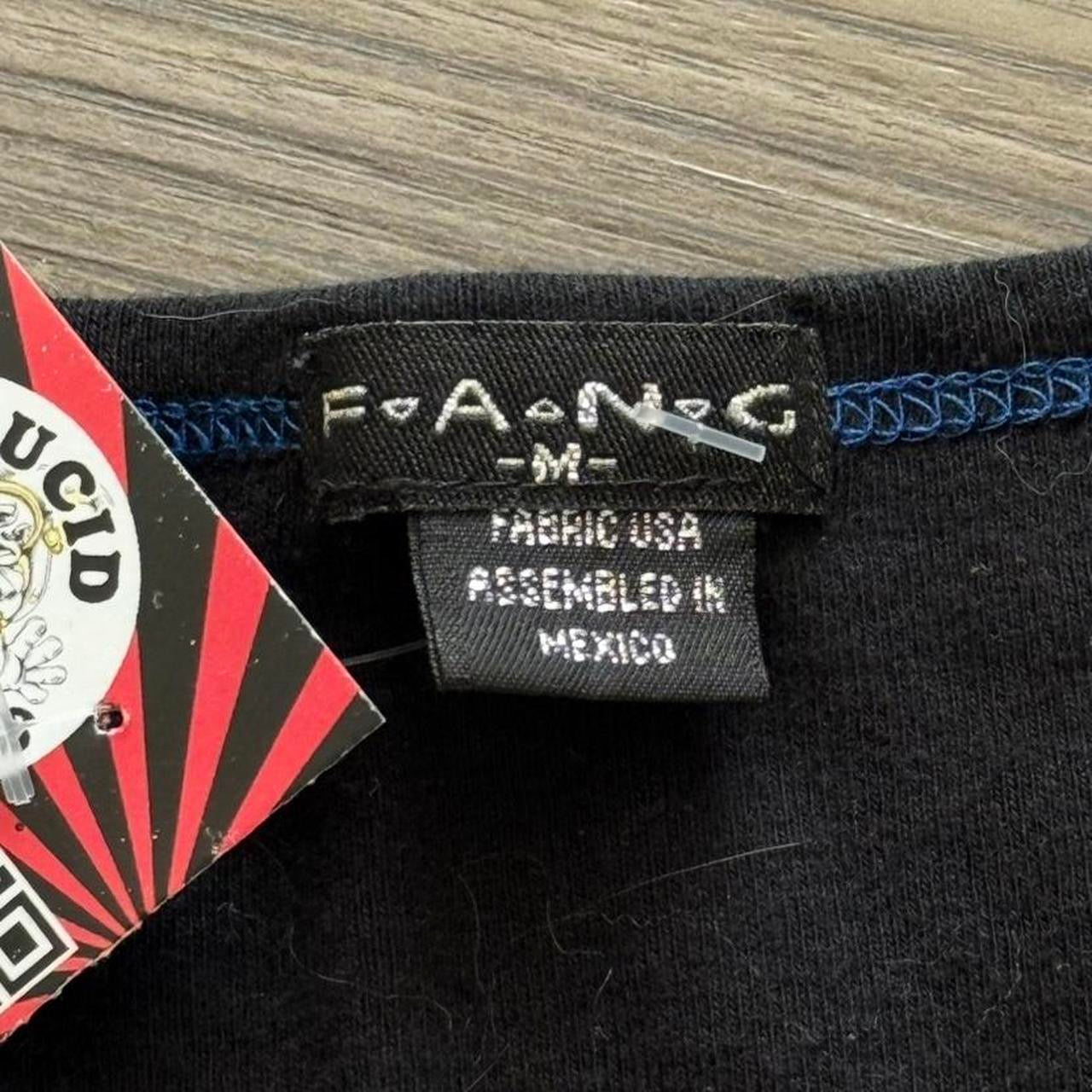 The cutest black longsleeve by FANG with an insane flame print in blue on the front and sleeves! The circle blue print also has blue glitter <3 slight cracking on the print, check last photo.