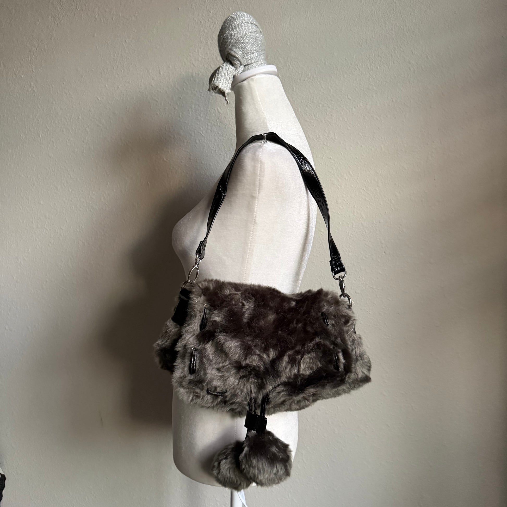 ୨୧˚ y2k gray faux fur shoulder bag ˚୨୧