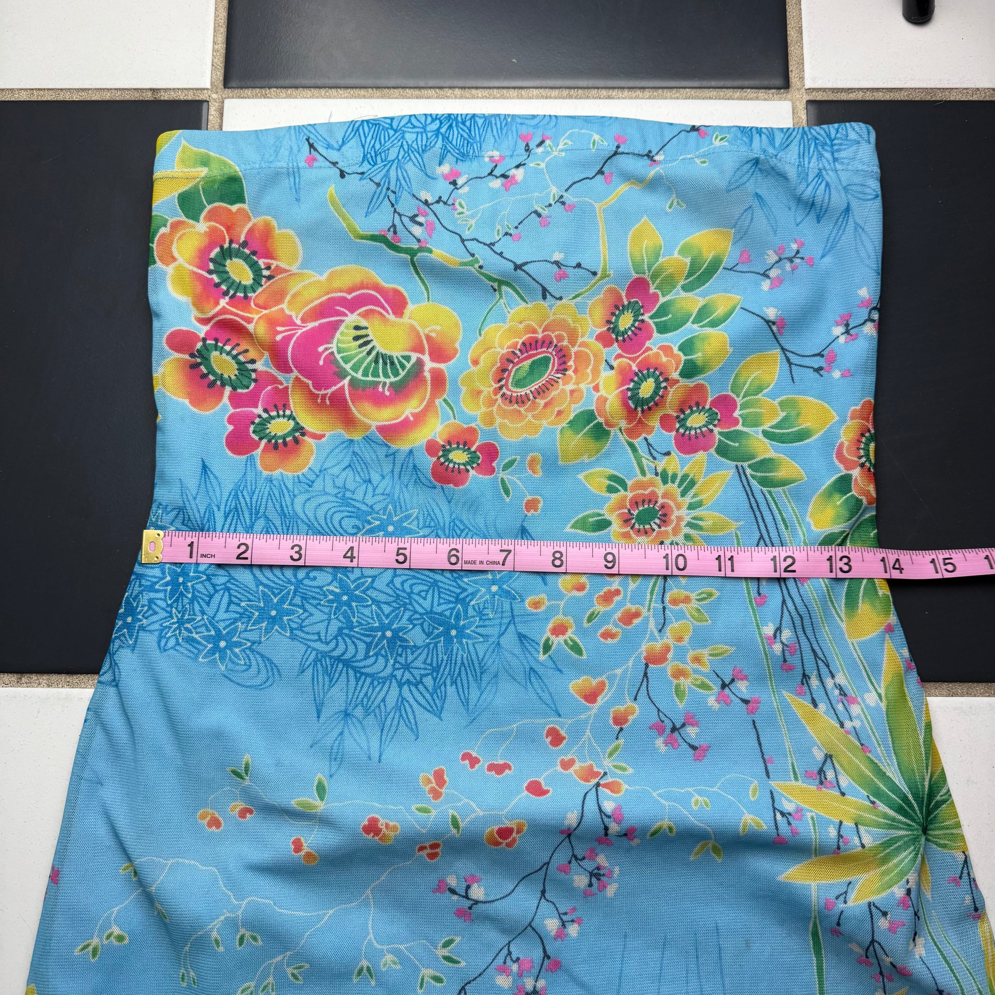 The cutest dress with black lace lining on the bottom and a colorful flower print <3 cut tag but dress is not shein.