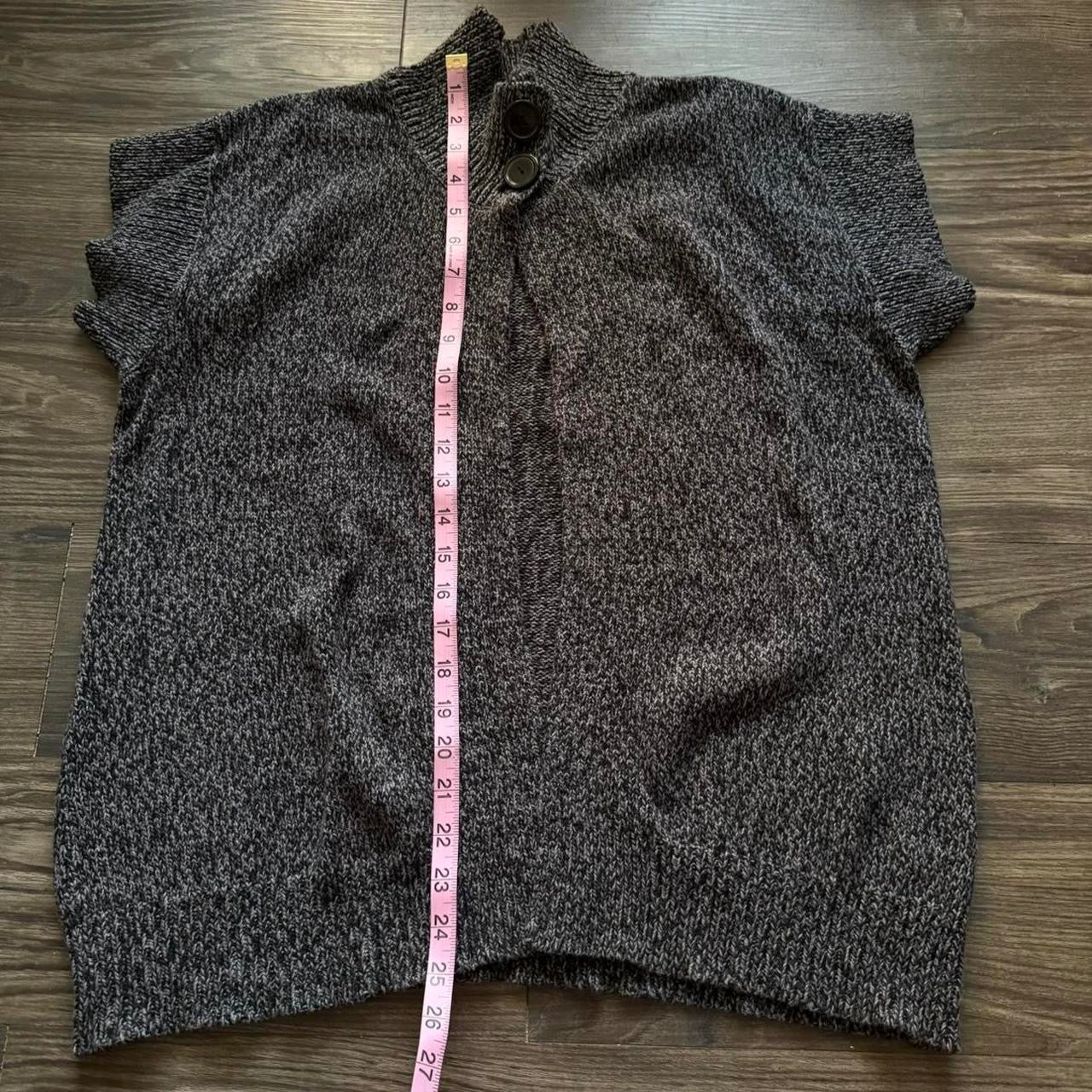 The cutest grey knitted cardigan with short sleeves and a button in the middle <3 the perfect sweater for layering!