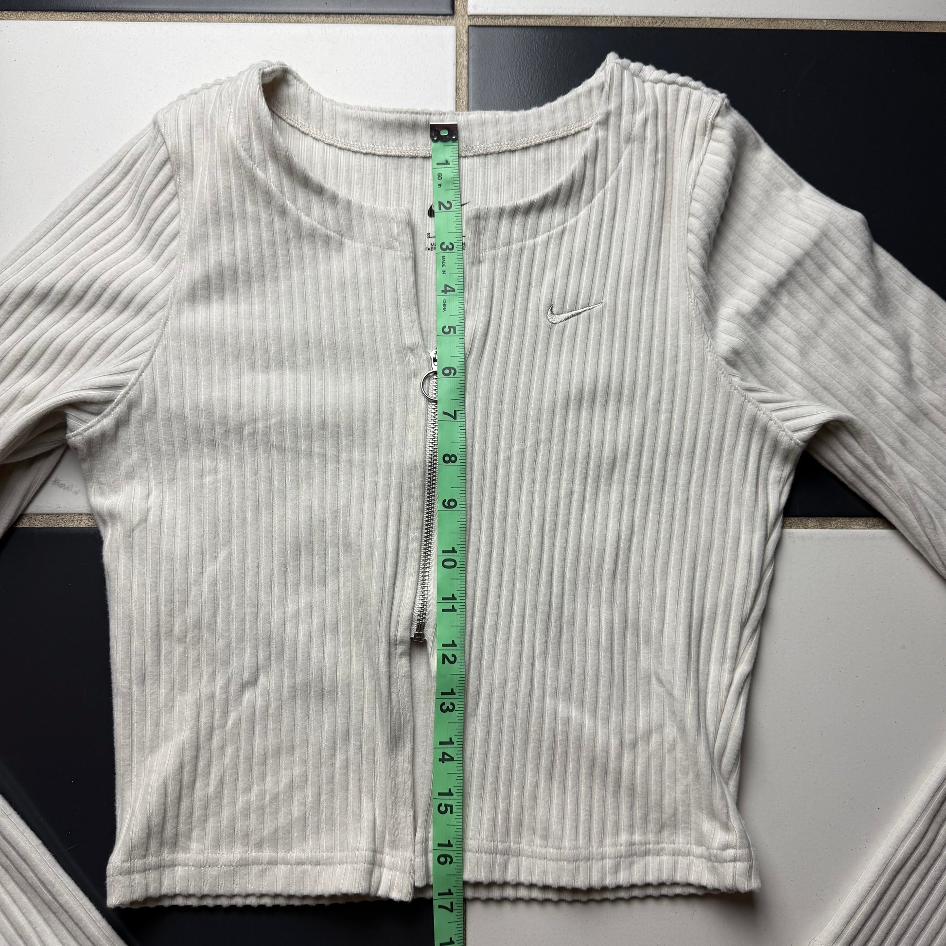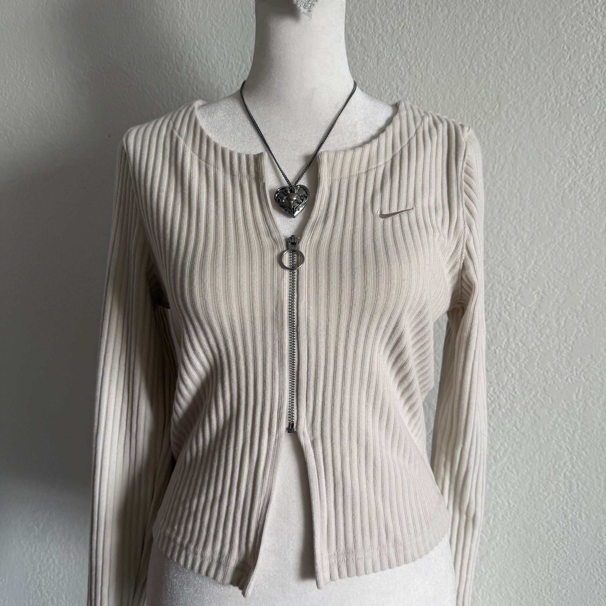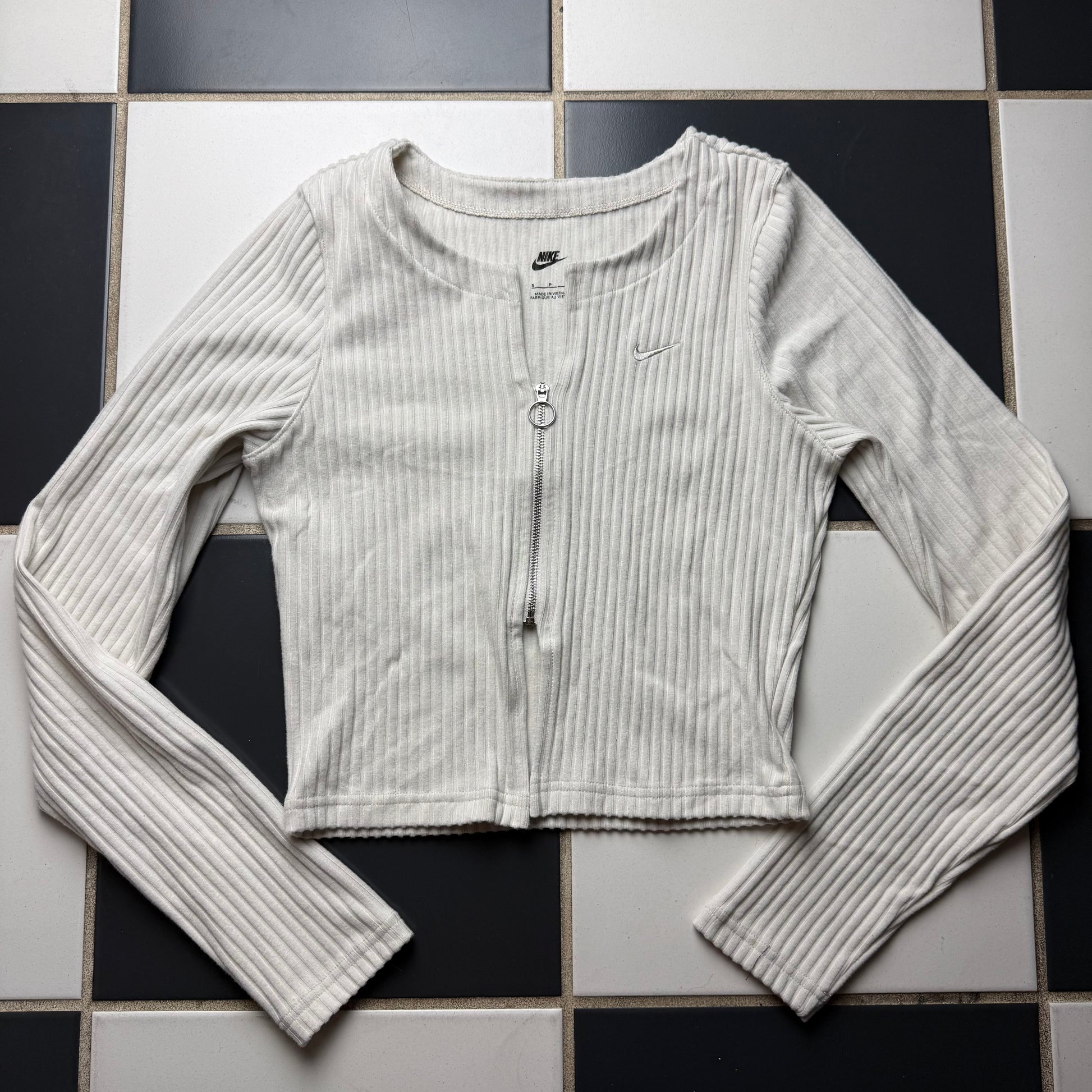 The cutest cream longsleeve top with an embroidered Nike logo on the front <3 the middle has a zipper with cropped look!