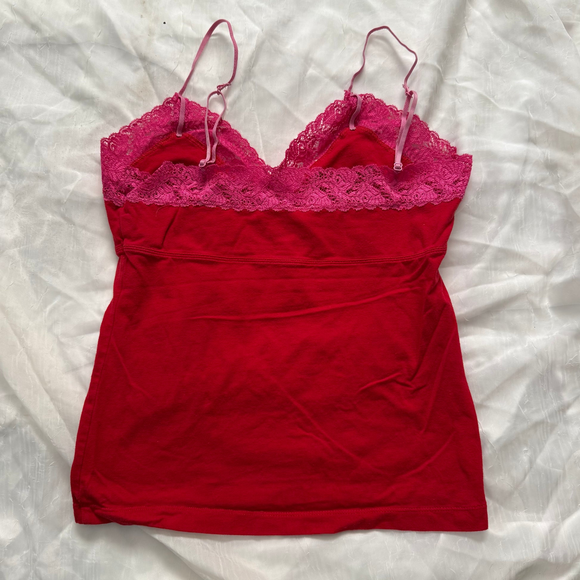୨୧˚ 2000s PINK lingerie lace fitted cami ˚୨୧