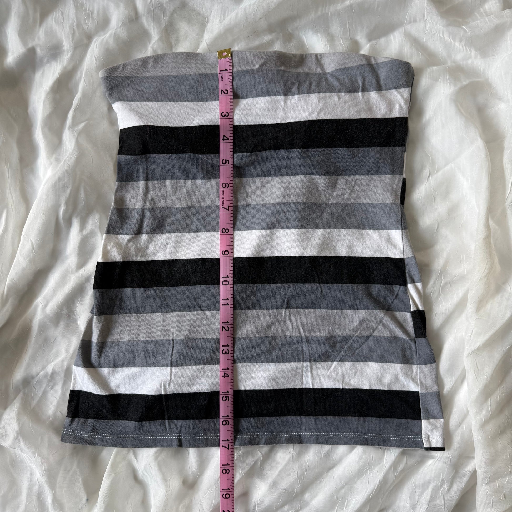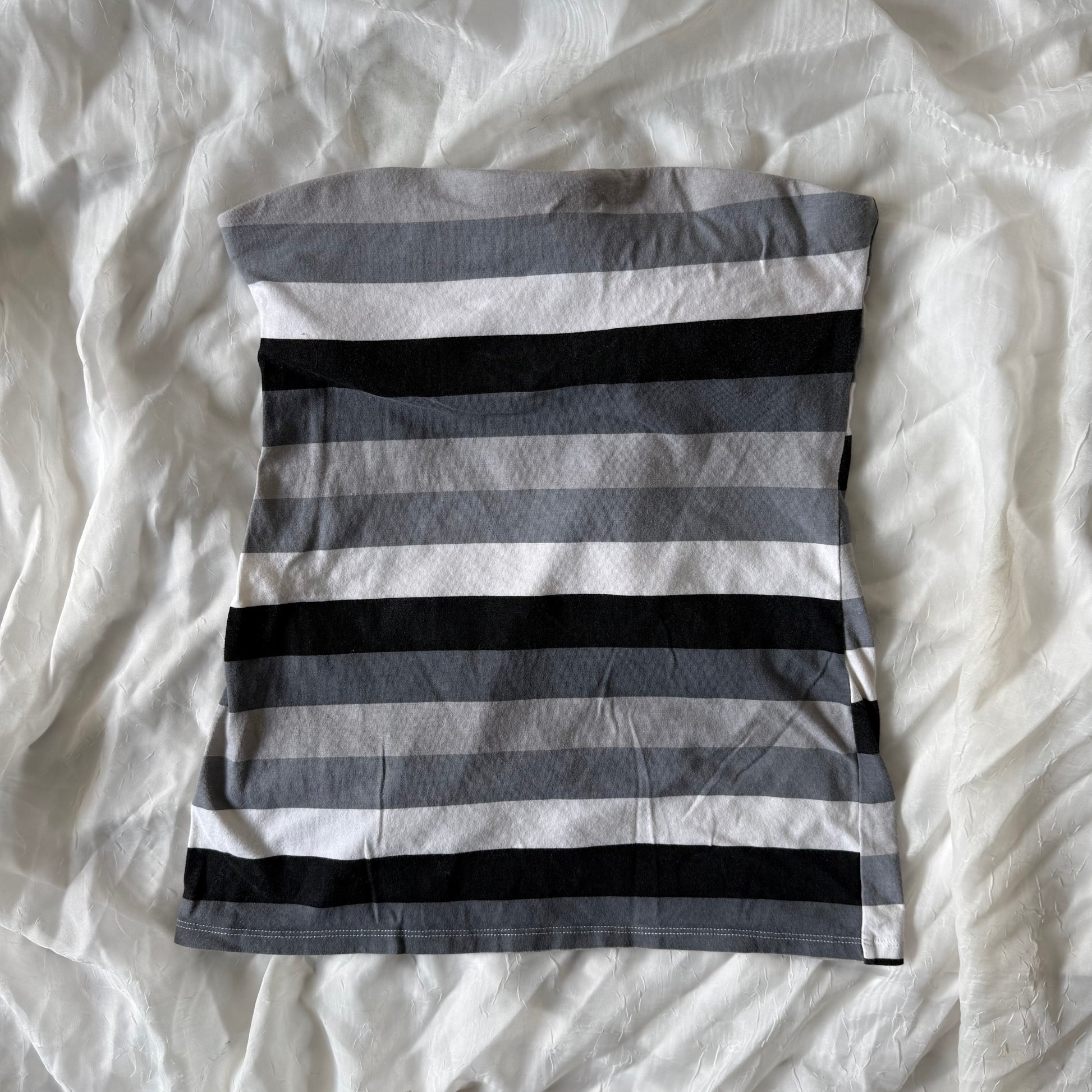 The perfect black, grey, and white tube top <3 the top has a built in bra on the inside.