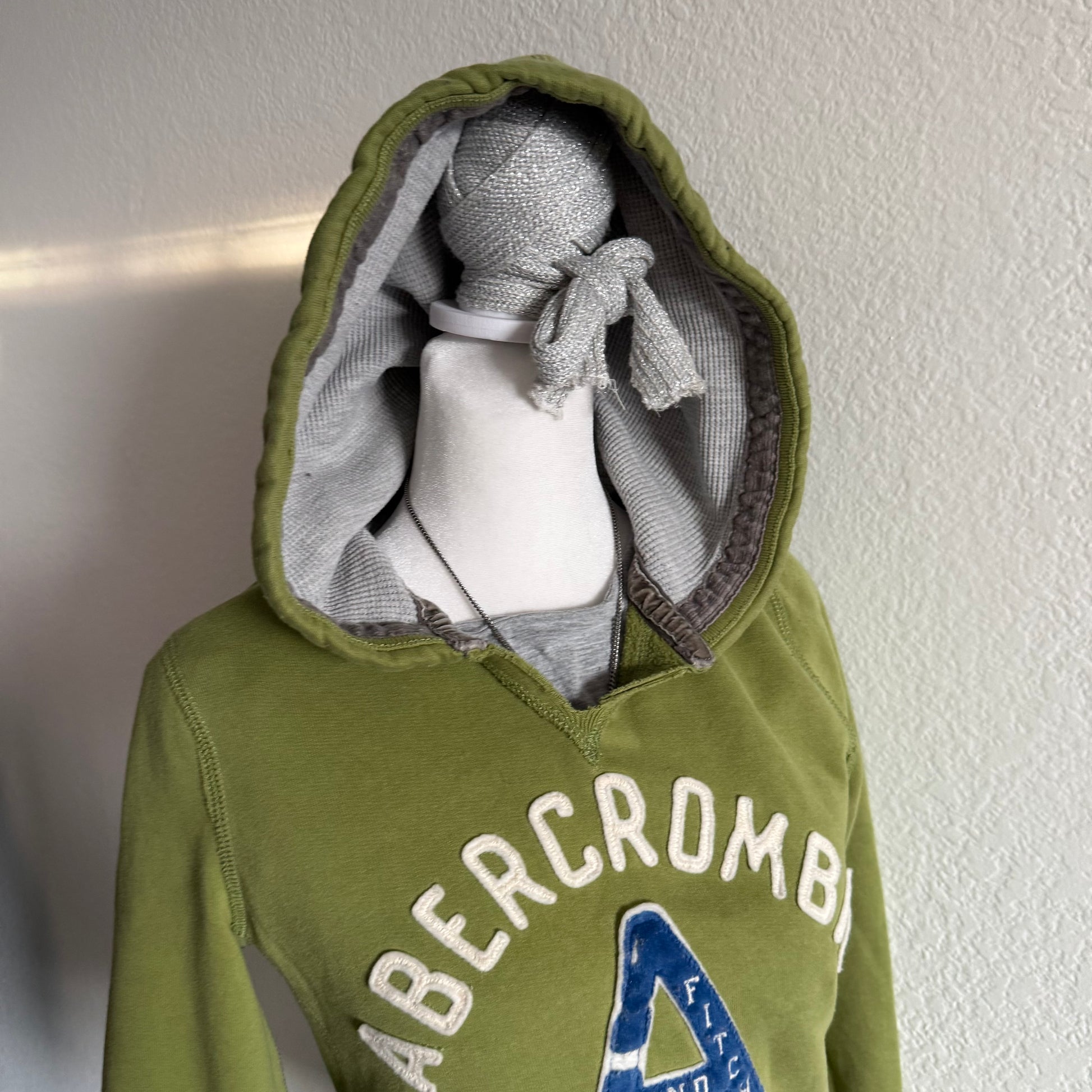 The cutest green sweatshirt by Abercrombie with fabric white lettering on the front and waffle knit material on the inside <3