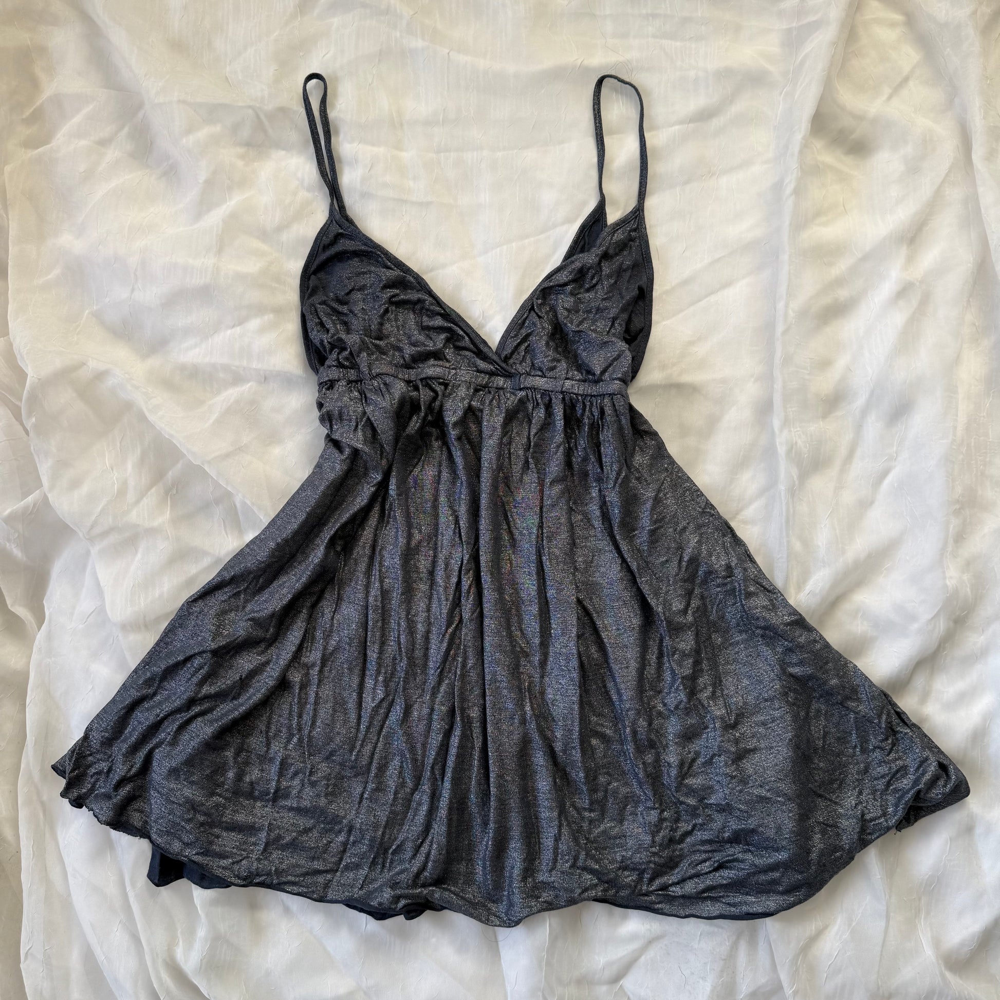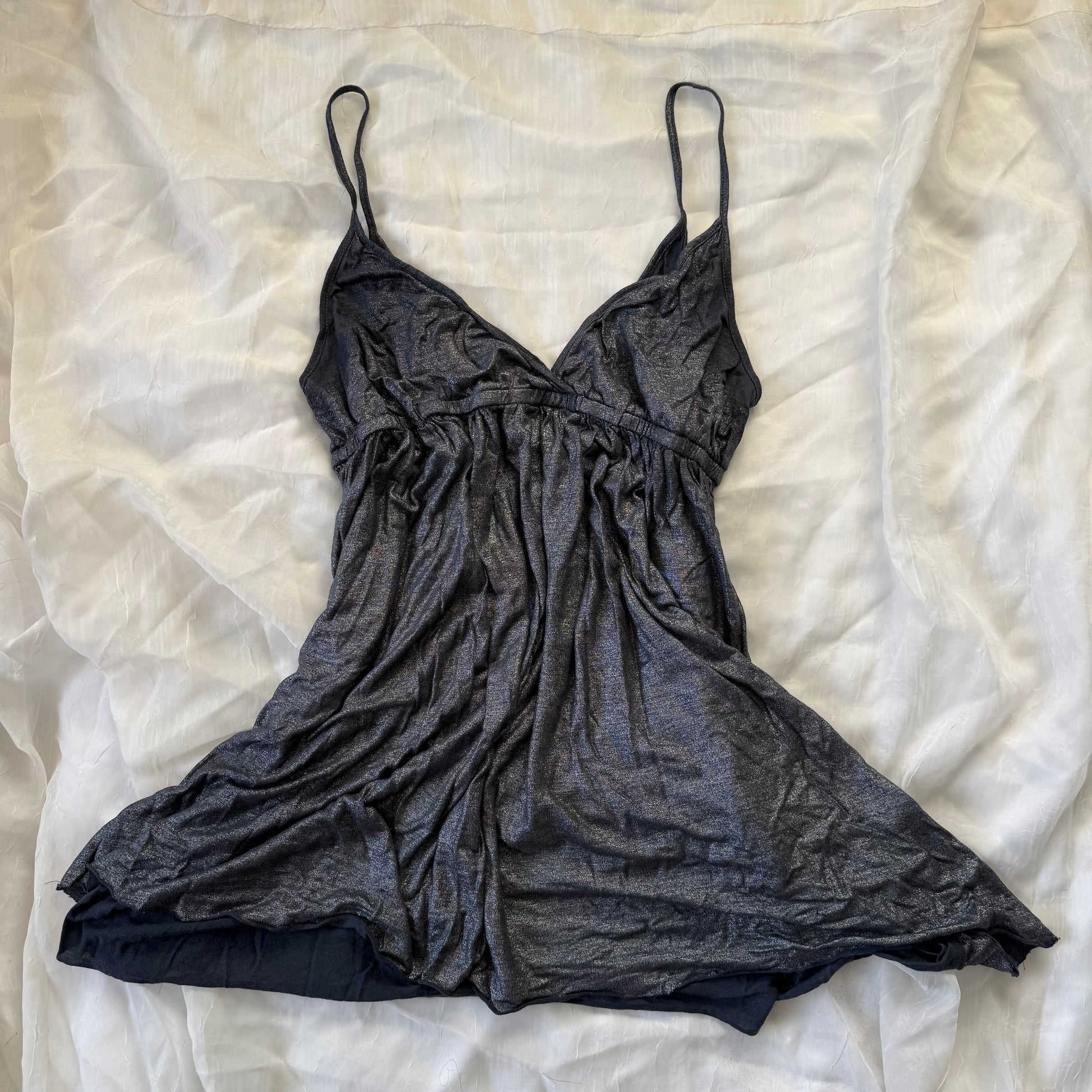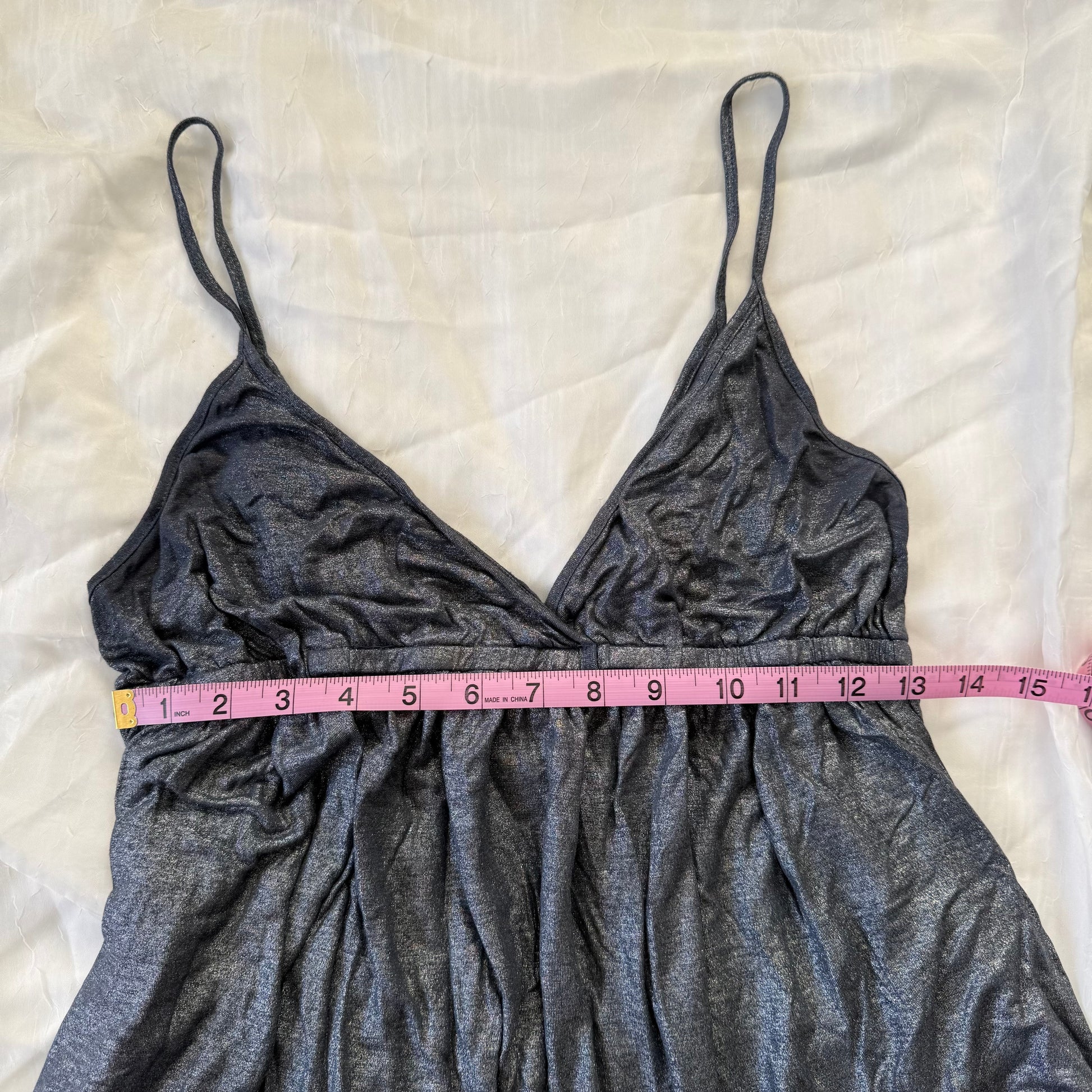 The perfect metallic cami top <3 it has cinching in the middle and a flowy fit!