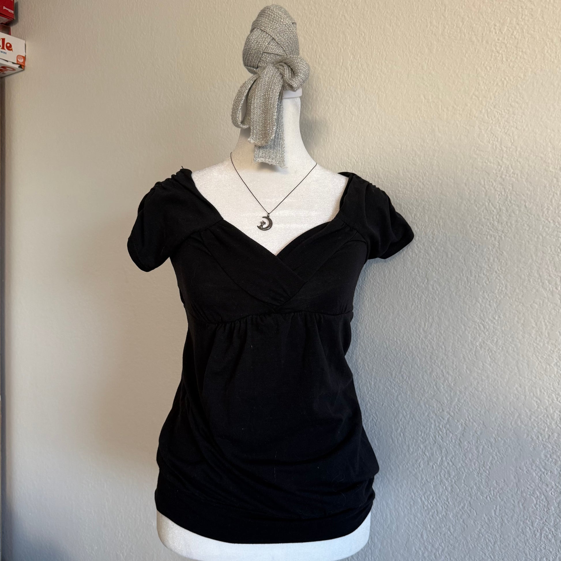 The cutest black top in a babydoll style <3 the perfect everyday basic top but with additional folding on the neck! <3 size:xs/s